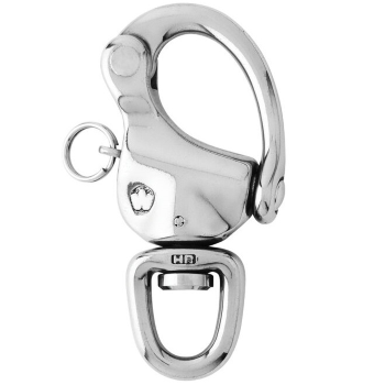 Moschettone gibb con girella in acciaio inox HR della marca Wichard. Dotato di sgancio rapido con un piccolo anello presa una presa ottimale. I prodotti Wichard sono testati e collaudati, offrendo sempre il massimo della qualità con ogni prodotto. L'acciaio HR aumenta enormemente il carico sopportabile dal moschettone, rendendolo estremamente solido e sicuro.