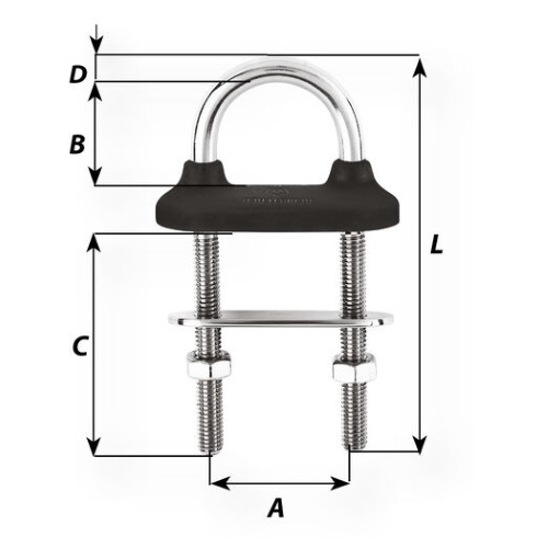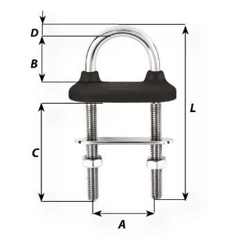 Golfare ad U in acciaio inox wichard, fornito con dadi di fissaggio, piastrina e gomma protettiva resistente ai raggi uv.