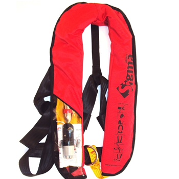 Giubbetto autogonfiabile SIGMA da 170N, con cintura di sicurezza, con attivazione automatica e manuale.