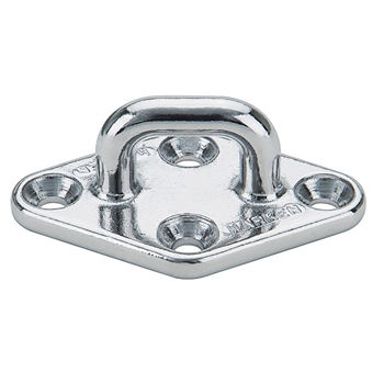 Golfare in acciaio inox, piccolo dalla forma romboidale. I carichi di rottura e lavoro sono variabili in relazione all'applicazione del carico sul golfare. Con questo golfare, è consigliabile un angolo di carico a 45°(Carico lavoro: 2270 Kg / Carico Rottura: 4535 Kg). Con un'applicazione a 90°(Carico lavoro: 1770 Kg / Carico Rottura: 3540 Kg) e con un'applicazione a 180°(Carico lavoro: 1950 Kg / Carico rottura: 3900 Kg) si ottengono prestazioni minori.