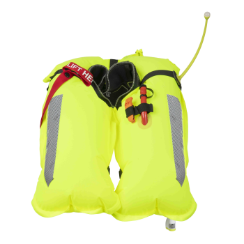 Giubbetto di salvataggio automatico 170N, con imbracatura di sicurezza. con attivazione Pro Sensor e sgancio rapido. Compatto e leggero, offre il massimo comfort e una grande libertà di movimento in tutte le condizioni, con cintura di sicurezza incorporata e attacco ad anello in tessile ad alta elasticità. Eccezionale vestibilità grazie al sistema ShoulderFit, con cinghia posteriore regolabile e collo a basso profilo, con cinghie facilmente regolabili e ancora più sicure grazie alle doppie cinghie. Munito di luce di sicurezza ad alta intensità PYLON Light, con alta visibilità a 360°. Tasca a retina per VHF, protezione antispruzzo giallo fluorescente, altamente visibile.
